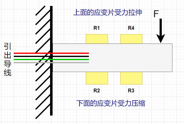 应变片一般由金属丝为材料制作的应变电阻,当金属丝受外力作用时,其长度和截面积都会发生变化,进而其电阻值即会发生改变。
